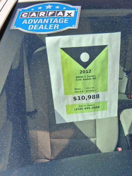 2012 BMW 5 Series $10,988 Mileage124,716 MilesTransmission8 Speed AutomaticColorWhiteStockNY29861EngineGas 2.0L 4 cylinderVINWBAXG5C58CDY29861